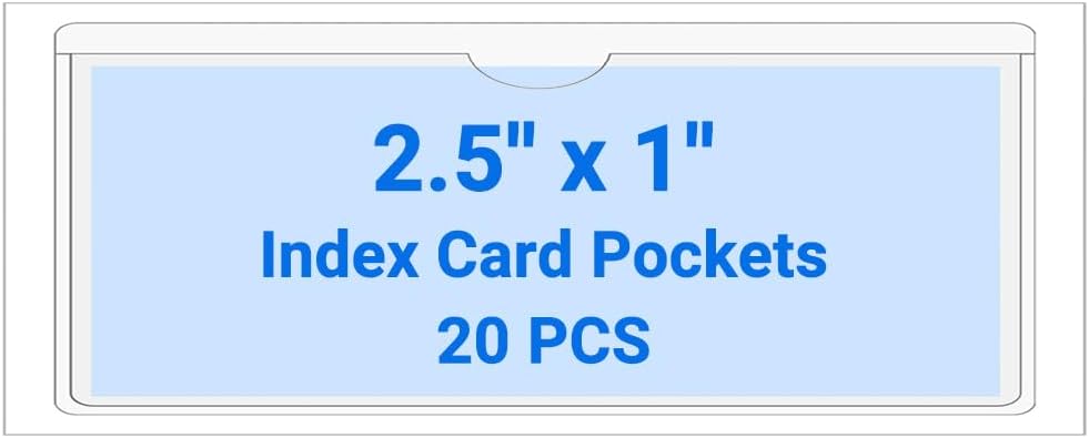 20 PCS Clear Self Adhesive Plastic Label Pockets, Binder Spine Business & Library Index Card Display Holder with Stick On for Planners Organizing, Storage Bins and Drawers (17 x 11 Inch)