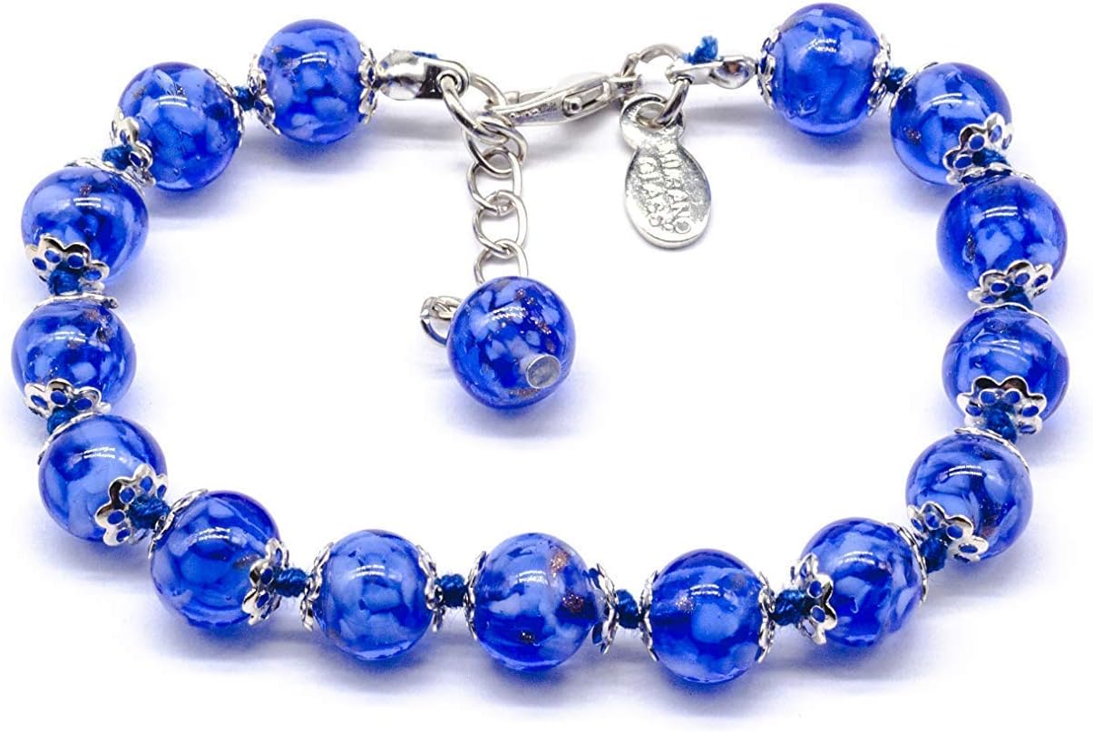 Murano Glass Handknotted Bracelet. High quality, handcrafted by our glass masters in a special design! Enjoy the beauty of authentic Murano Glass The beads are handmade over a torch and subject to slight variations. The process of creating unique items from Murano glass has stayed in a traditional form for many centuries and the secrets of the glassblower profession transmitted from father to son. The name comes from the Murano island in the Venetian lagoon, where all the workshops were transferred by the end of thirteenth century. Our collection includes some of the finest examples of Murano glass jewelry, handmade in Venice by expert artisans. This is a unique accessory that will brighten up your look and your day. ✔️ The product is well packed for shipping and safe for damages. ✔️ Size of the beads is 8mm ✔️ Bracelet measures approximately 7 inches in length or 17.5cm (The beads are handmade over a torch and subject to SLIGHT VARIATIONS) ✔️ From Venice with love!