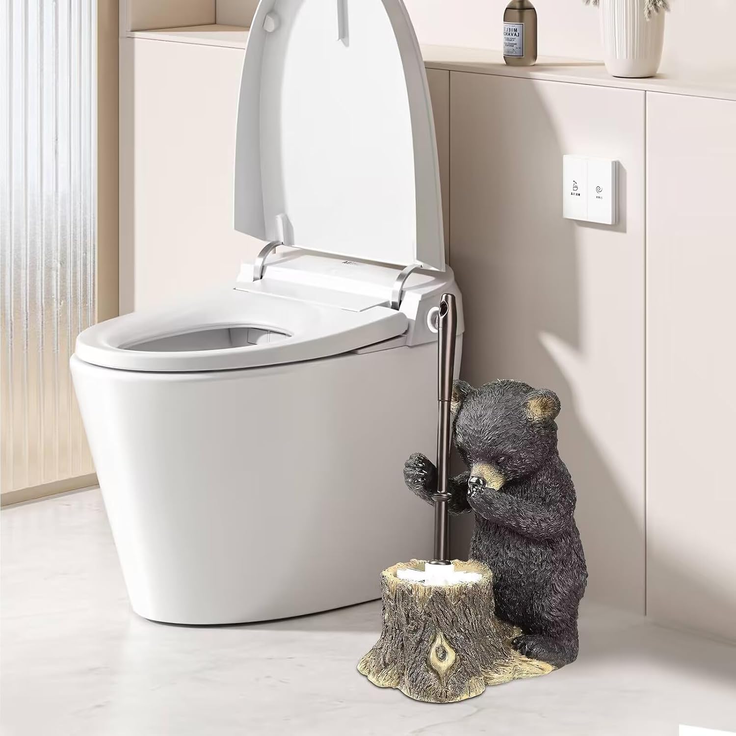 Cute Bear-shaped Toilet Brush Holder Set Product Features: This cute little bear toilet brush and holder set is waterproof and easy to clean. Its unique and fun design, with a little bear covering its nose with its tail, will surely bring a smile to you and your guests. This humorous theme helps to ease the awkwardness of the "odorous" situation. The brush is made of durable plastic and features nylon bristles that are replaceable. It can be easily converted to a regular-sized brush head. The teddy bear design is extremely cute and complements the lifelike tree stump-shaped brush holder perfectly. It is an excellent decorative gift for the bathroom or dressing room. This multi-functional toilet brush is suitable for various places such as homes, apartments, dormitories, RVs, and outdoor spaces. Specification Parameters: Description: A cute and interesting bear-shaped toilet brush and holder set Shape: Bear and tree stump Product Type: Toilet brush and holder Material: Resin base; Durable plastic handle with nylon bristles Bear base size: 5.9 x 9.05 x 14.17 inches; Brush size: 3.2 x 3.2 x 14 inches Weight: 2.97 pounds The package contains: 1 bear-shaped base 1 brush head 1 handle
