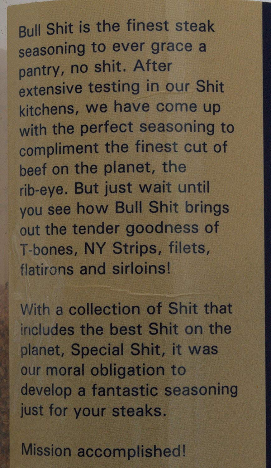 Bull Shit is the finest steak seasoning to ever grace a pantry, no shit. After extensive testing in our Shit kitchens, we have come up with the perfect seasoning to compliment the finest cut of beef on the planet, the ribeye. From the master kitchens of Big Cock Ranch comes the Shitload, the perfectly balanced dry rub sample set that provides all the Shit you could ever need for legendary barbecues and grilling.