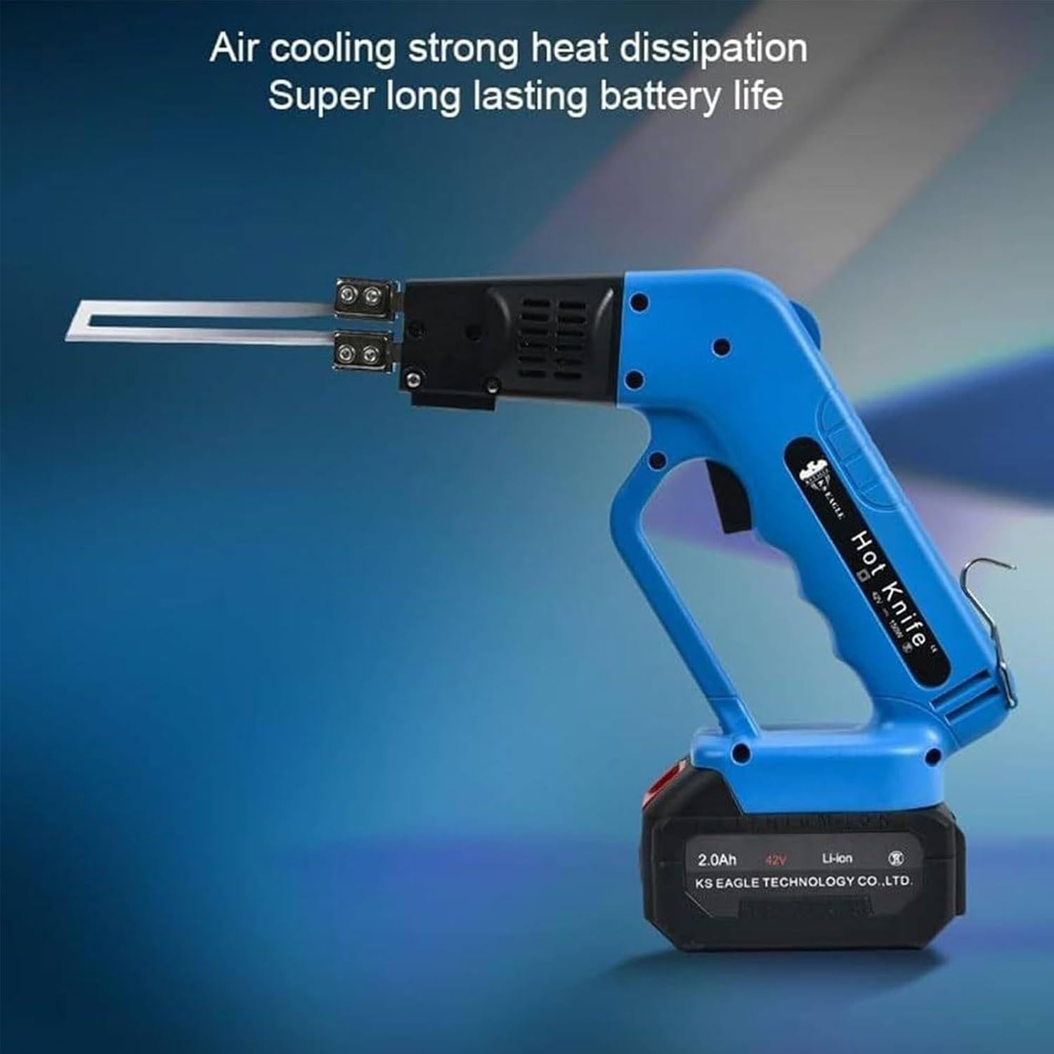Product DescriptionThe electric heating cutting knife is an innovative cutting tool that utilizes electric energy for effective cutting. It is primarily designed for cutting low-density foam materials as well as chemical fiber rope and cloth.This cutter comes with a portable tool box, making it id/eal for industrial efficiency and versatility—perfect for crafting, fabrication projects, and sponge slotting. Product Features: 1. Instant Heating, Precise Control: Heats to 500°C (932°F) in just 5-8 seconds, and can be adjusted between room temperature and 600°C (1112°F) 2. Long-Lasting Freedom: The 2.0Ah battery provides 45 minutes of continuous cutting power 3. Intelligent Air Cooling and Safety: A fan cooling sy/stem and circuit protection design maintain stable temperatures, helping prevent burnout from prolonged use. 4. Multi-Material Mastery: Provides surgical precision in cutting foam, rubber, plastic, and sponge grooving applications. Specifications: - Product Name: Foam Cutting Tool - Color: Blue - Power: 150W - Input Voltage: 110V, 220-240V - Current: 10A - Battery Capacity: 2.0Ah - Adjustable Temperature: 50-600°C - Heating Speed: 5-10s - Working Time: 45 minutes - Blade Length: 100mm (3.94 inches) - Cutting Length: 10mm Foam Package Contents: 1 150W machine 1 slotter G01 1 10cm straight knife B02 1 bendable knife B05 1 2000mAh lithium-ion battery 1 charger 1 manual 1 copper cleaning brush 1 Allen wrench 1 plastic tool box