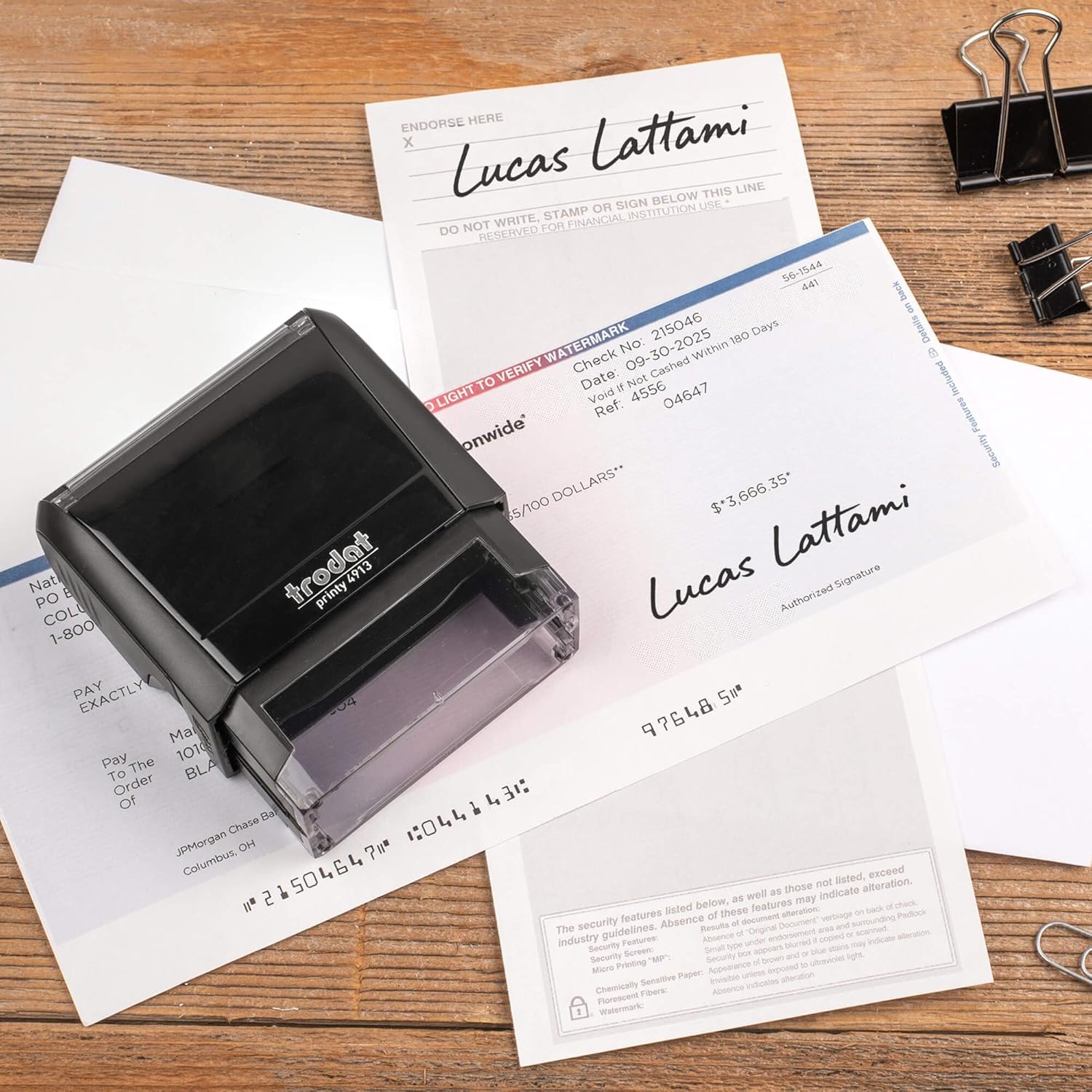 Make easy work of signing stacks of documents with our Signature Stamp. This stamp is great for stamping checks and other limited space items. Signature stamps are available as self-Inking or a traditional hand stamp. You can also choose from 7 eco-friendly ink colors. Signature Stamps are made in the USA.