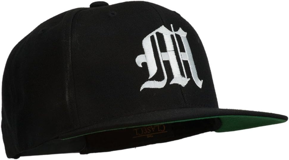 Product Type, Old English M Embroidered CapMaterial Composition, Made of 80% acrylic and 20% woolSize Information, One size fits most with an adjustable plastic snap closure, fitting up to XLInterior Details, Same material inner hat bandSuitability, Adult/UnisexCrown Dimensions, Crown measures 4 inches deepBill Dimensions, Bill measures 2 3/4 inches longCare Instructions, Hand wash onlyOrigin, ImportedDesign Details, Old English font letter M is embroidered on the front crown of capVentilation, 6 small ventilation holes placed on each panel of crownBill Characteristics, Bill is stiff and flat, green color under the billCrown Structure, 2 front panels of crown are structuredPanel Count, 6 panelsProfile, High profileUse Cases, Great for representing the alphabet, letter, initials, and for other great purposesSeason Suitability, All SeasonProduct Dimensions, 7 1/2 (W) X 10 (L) X 5 (H) inchesMaterial Properties, Thick, soft, and light materialAvailability, Available in different colors and styles