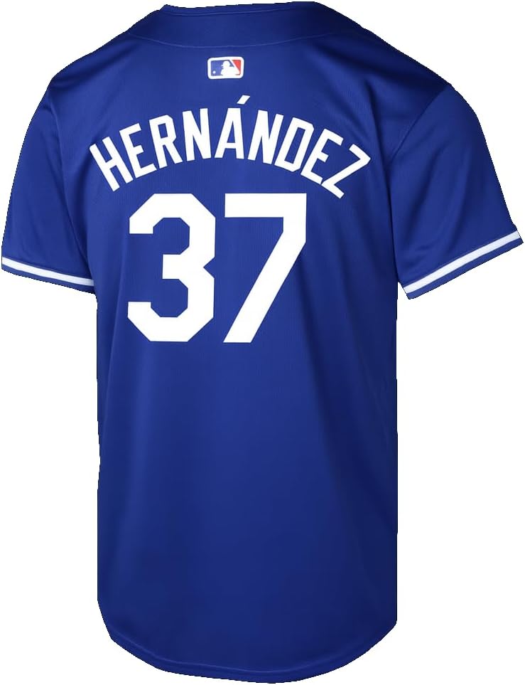 Let your young baseball fan show their Dodgers pride with this official Teoscar Hernandez alternate blue jersey from Outerstuff. Perfect for game days or everyday wear, this youth-sized jersey features the authentic Los Angeles Dodgers design and Hernandez's player details. Made for fans ages 8-20, this comfortable sports jersey combines style with durability. The classic baseball jersey cut allows for easy movement whether they're cheering in the stands or playing backyard baseball. Available in youth sizes, this officially licensed MLB merchandise lets kids represent their favorite Dodgers outfielder in authentic team colors. The jersey's quality construction ensures it can keep up with active young fans throughout the season.