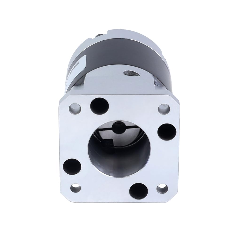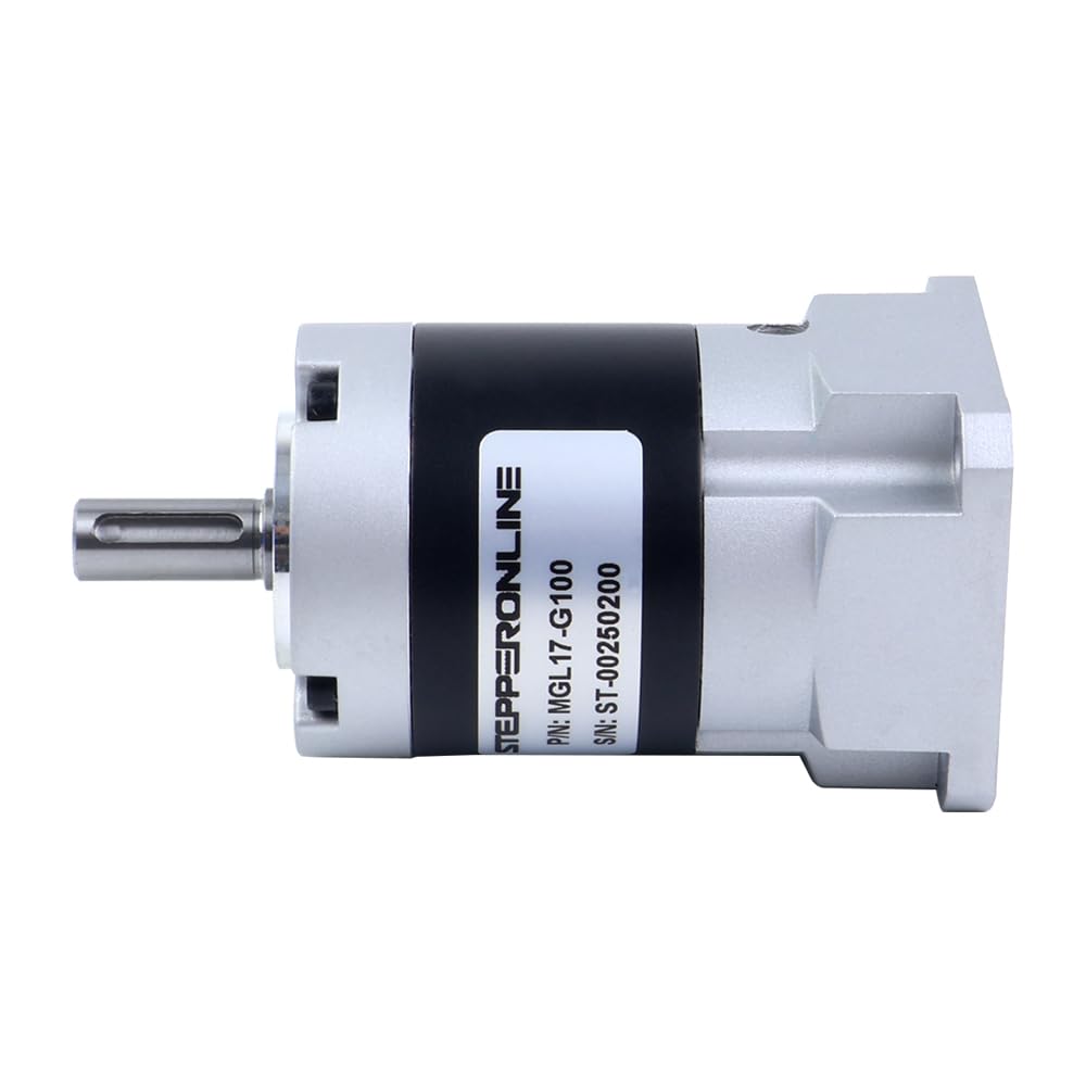 The MGL series high-precision planetary gearboxes of the MGL series offers a gear ratio of 100:1 and a maximum backlash of 45arc-min. In contrast to the MG series, the MGL series is specially designed to support standard Nema 17 motors with standard shafts and therefore offers greater flexibility in the combination of motor and gearbox. This in-line planetary gearbox is equipped with a built-in input shaft coupling that ensures compatibility with standard 5mm diameter shafts used in Nema 17 stepper motors, brushless DC motors and brushed DC motors. Gearbox Specifications *Part Number: MGL17-G100 *Gearbox Type: Spur Planetary *Gear Material: Powder Metallurgy *Gear Ratio: 100:1 *Efficiency: 80% *Rotor Inertia: 0.03kg·cm² *Backlash at No-load: ≤45arcmin *Maximum Permissible Torque: 10Nm(88.51lb-in) *Moment Permissible Torque: 20Nm(117.02lb-in) *Shaft Maximum Axial Load: 100N *Shaft Maximum Radial Load: 300N *Noise: ≤55dB *Waterproof Rating: IP54 *Lifetime: 20000hours Physical Specifications *Frame Size: 42 x 42mm *Gearbox Length: 66mm *Rated Input Speed: 1000rpm *Maximum Input Speed: 2000rpm *Output Shaft Type: KeyWay *Output Shaft Diameter: φ8mm *Output Shaft Length: 21.5mm *Input Shaft Diameter: φ5mm *Input Shaft Length: 21.5-25mm